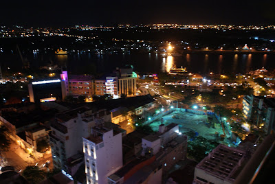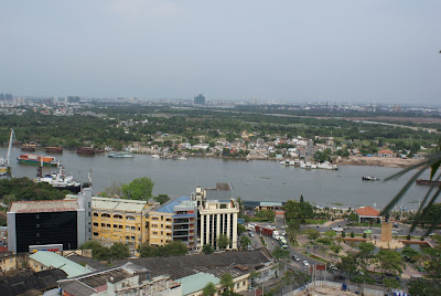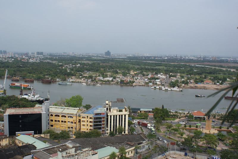 Las vistas desde la habitación del hotel con el río Saigón al fondo