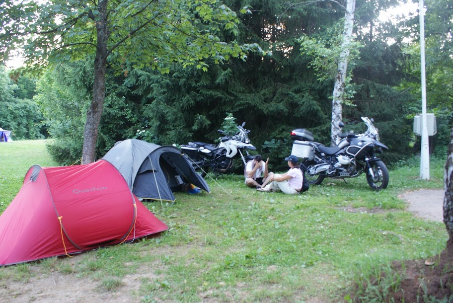 Tras localizar el camping que el GPS se empeñaba en colocar al otro lado del río, nos registramos y de nuevo a montar el chiringuito