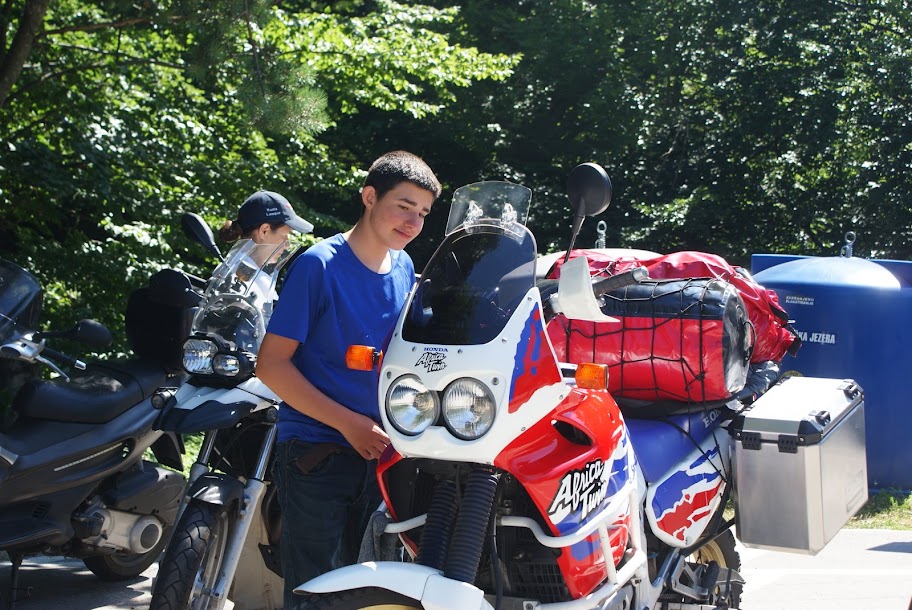 De vuelta al parking a mi sobrino le gustó una Africa Twin que habían aparcado junto a nuestras motos... Rodrigo ya apunta maneras